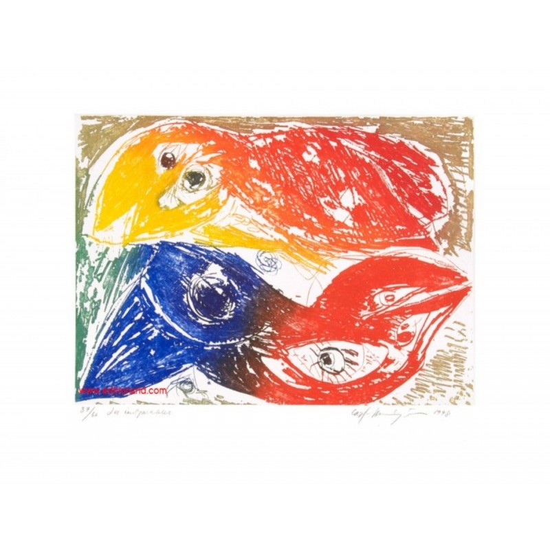 Un hermoso grabado original en cobre de 47 x 54 cm, del artista danés Carl-Henning Pedersen, uno de los fundadores del grupo Cobra.